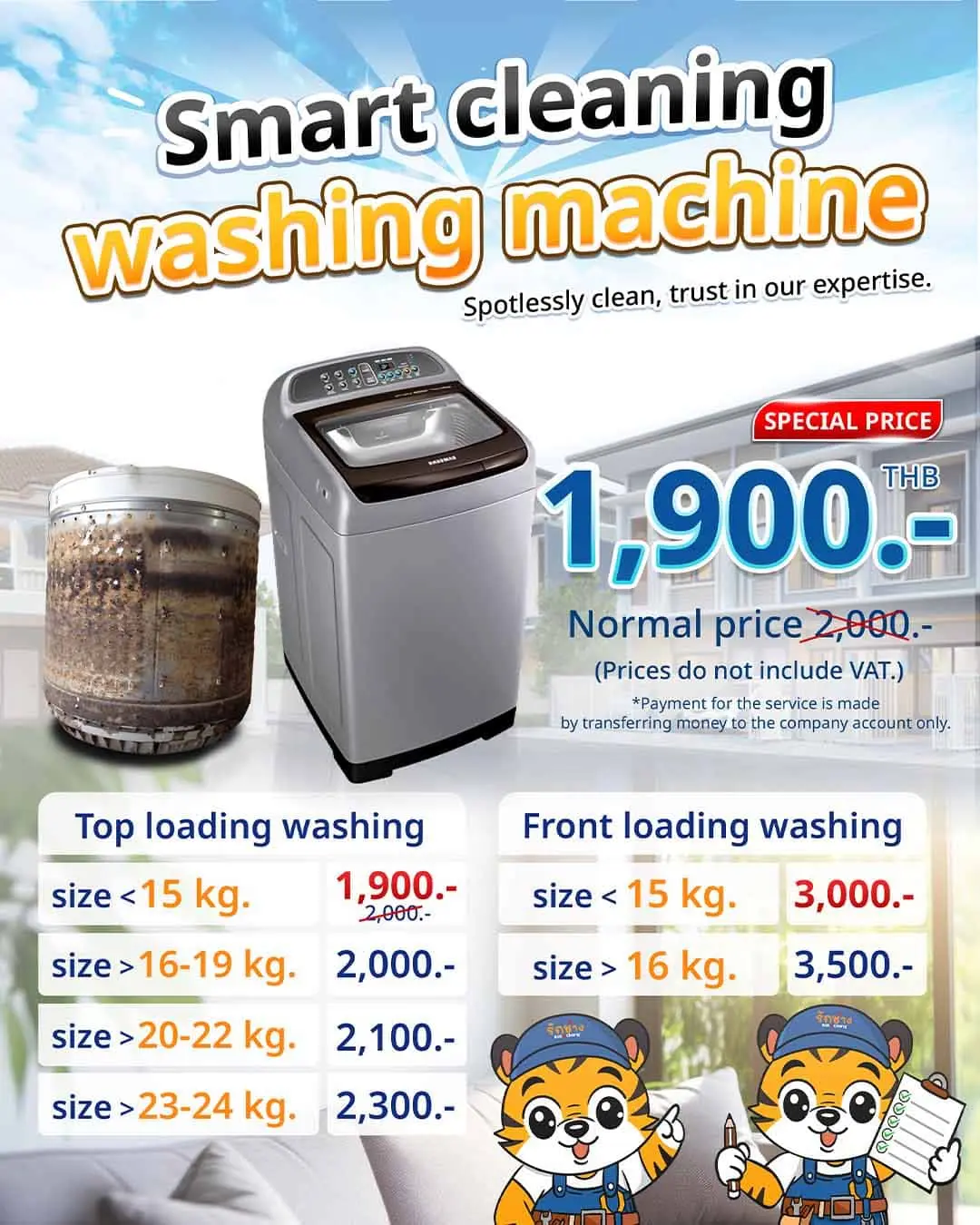 Large Unit Cleaning: Starts at 2,100 THB/unit for specialized care, including system moisture removal and full-unit dismantling.