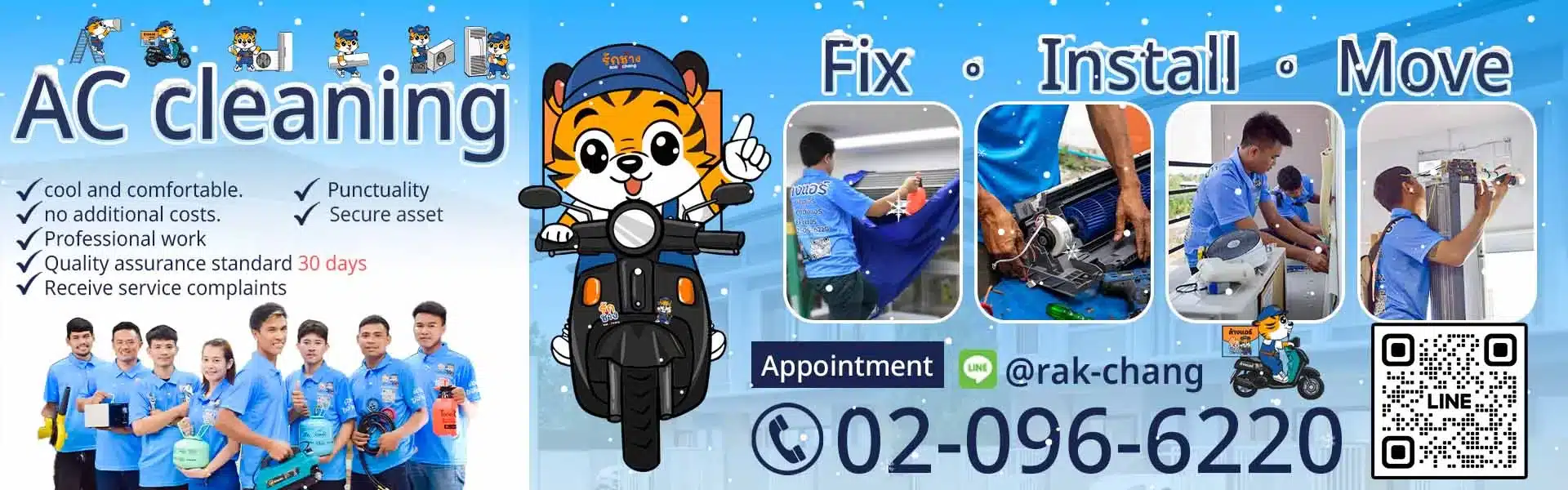 Make your AC maintenance—whether it’s cleaning, repair, installation, or relocation—a hassle-free experience with the Rak-Chang professional team. We prioritize every detail and provide high-quality services at competitive, transparent prices with no hidden costs. Our services cover Bangkok, Nonthaburi, Samut Prakan, and Pathum Thani.
